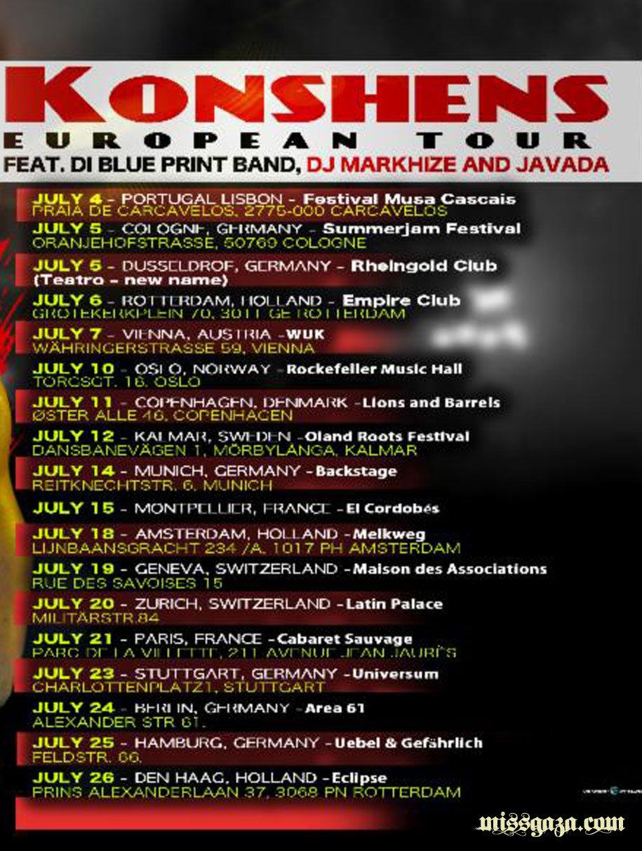 MISS GAZA > Blog > Artists > Konshens European Tour Dates For July 2014 With BluePrint Band, DJ Mark Hize & Javada