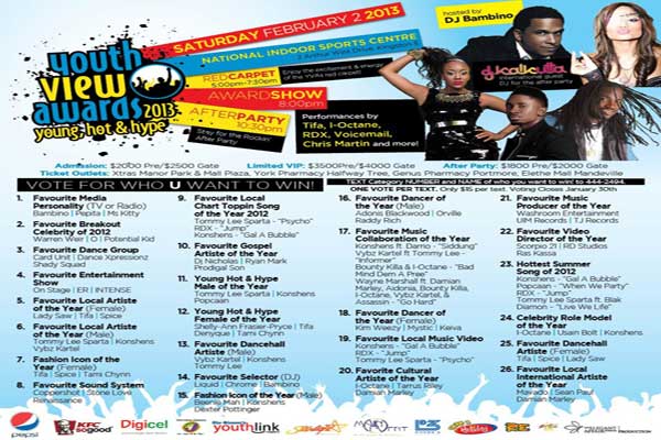 JAMAICA YOUTH VIEW AWARDS LIST OF WINNERS 2013